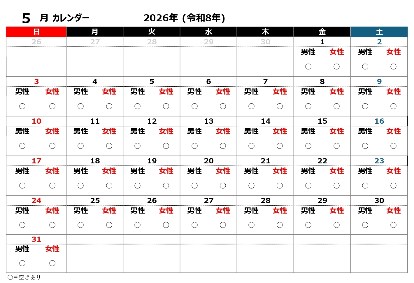 施設空き情報のお知らせ